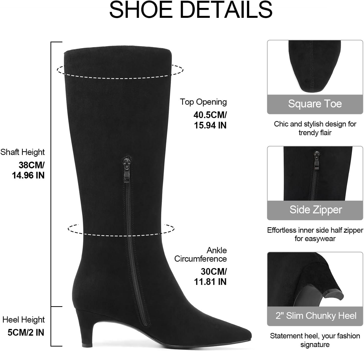 - Score big on Tscoyuki Knee High Boots for Women Kitten Low Heel Square Toe Tall Boots Side Zipper Vegan Leather Heeled Long Fall Boots for Office Dating Party Work Trendy(Black Suede) and accessories during our BOGO sale. Buy one, get one 50% off!