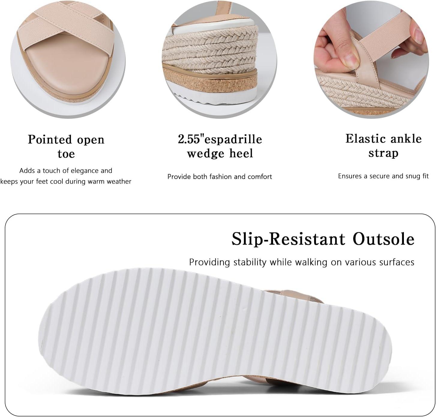 - Score big savings on Tscoyuki Wedge Sandals for Women, Comfortable Slip On Open Toe Wedges Heels Dressy Elastic Ankle Strap Espadrilles Sandals(Nude) during our back-to-school sale. Limited quantities available.