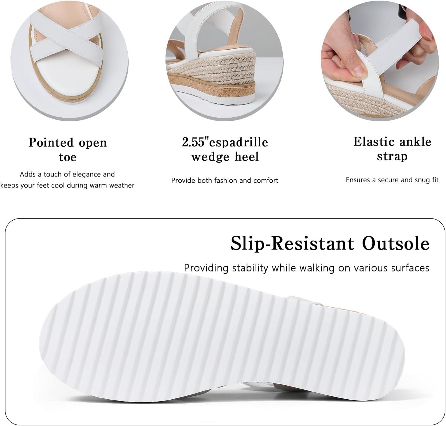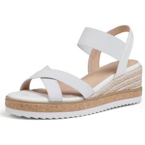 Tscoyuki Wedge Sandals for Women, Comfortable Slip On Open Toe Wedges Heels Dressy Elastic Ankle Strap Espadrilles Sandals(White)