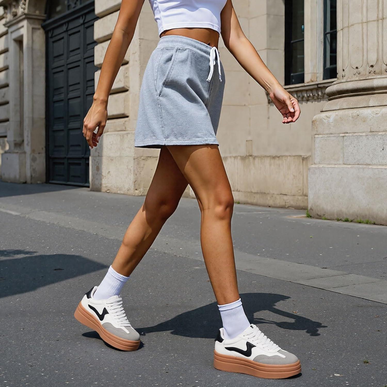 Tscoyuki Platform Women’s Fashion Sneakers Casual Spring Shoes Non Slip Lightweight Walking Shoes Lace-Up Thick Sole Chunky Tennis Shoe(White Gray)