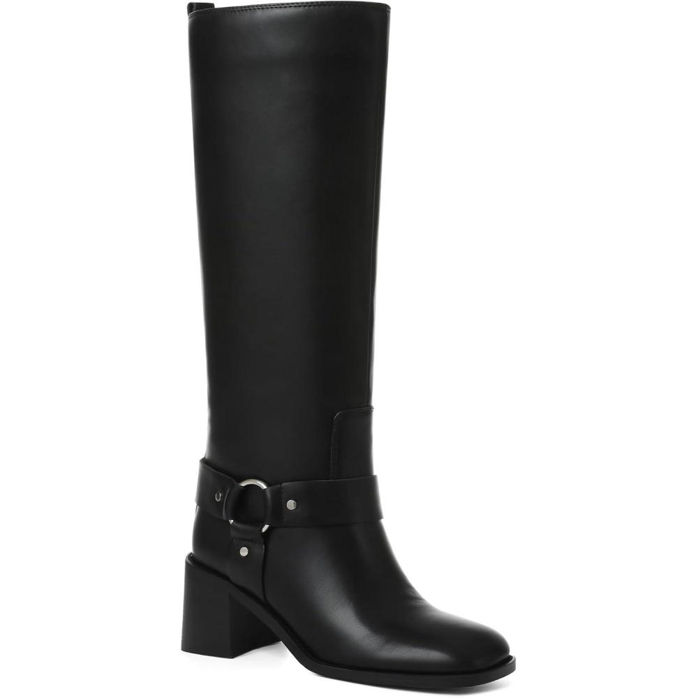 Tscoyuki Women’s Knee High Boots, Chunky Heel Square Toe Tall Boots for Women Wide Calf Slip On Motorcycle Riding Boots(Black)